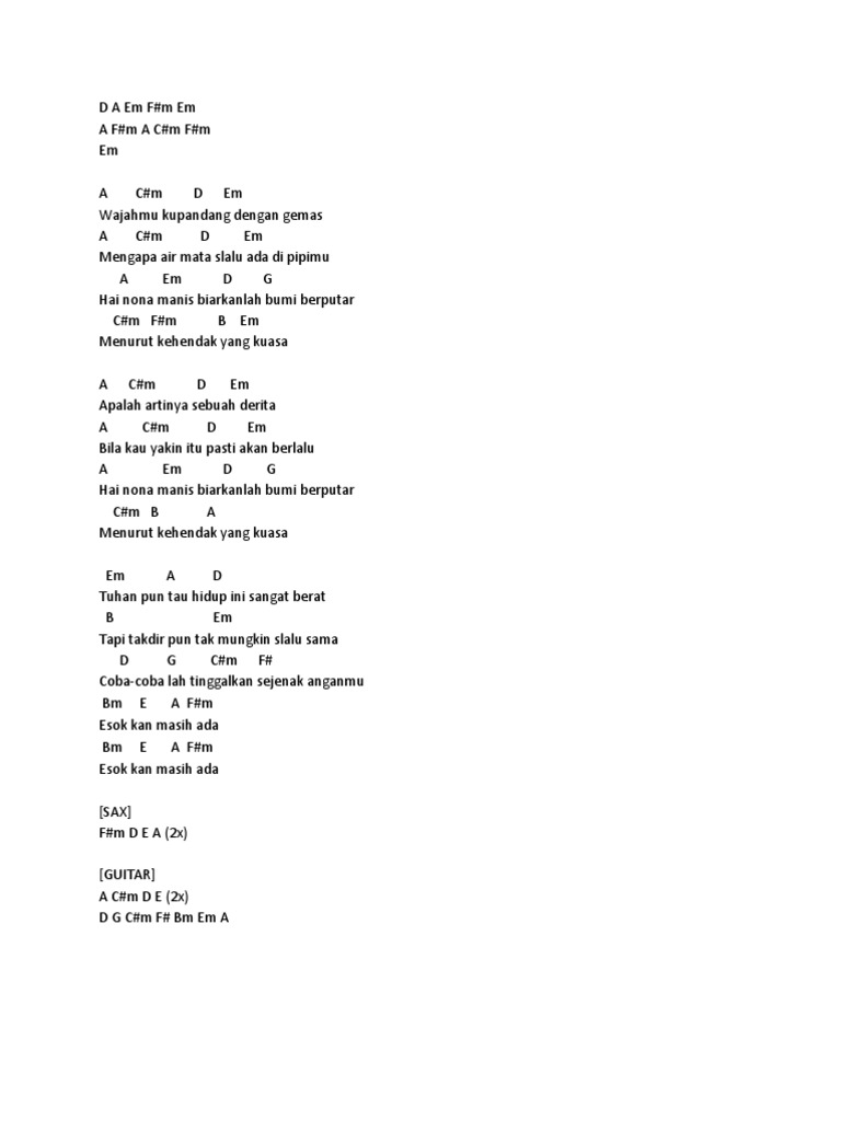 Chord Lagu Esok Kan Masih Ada Seputar Musik